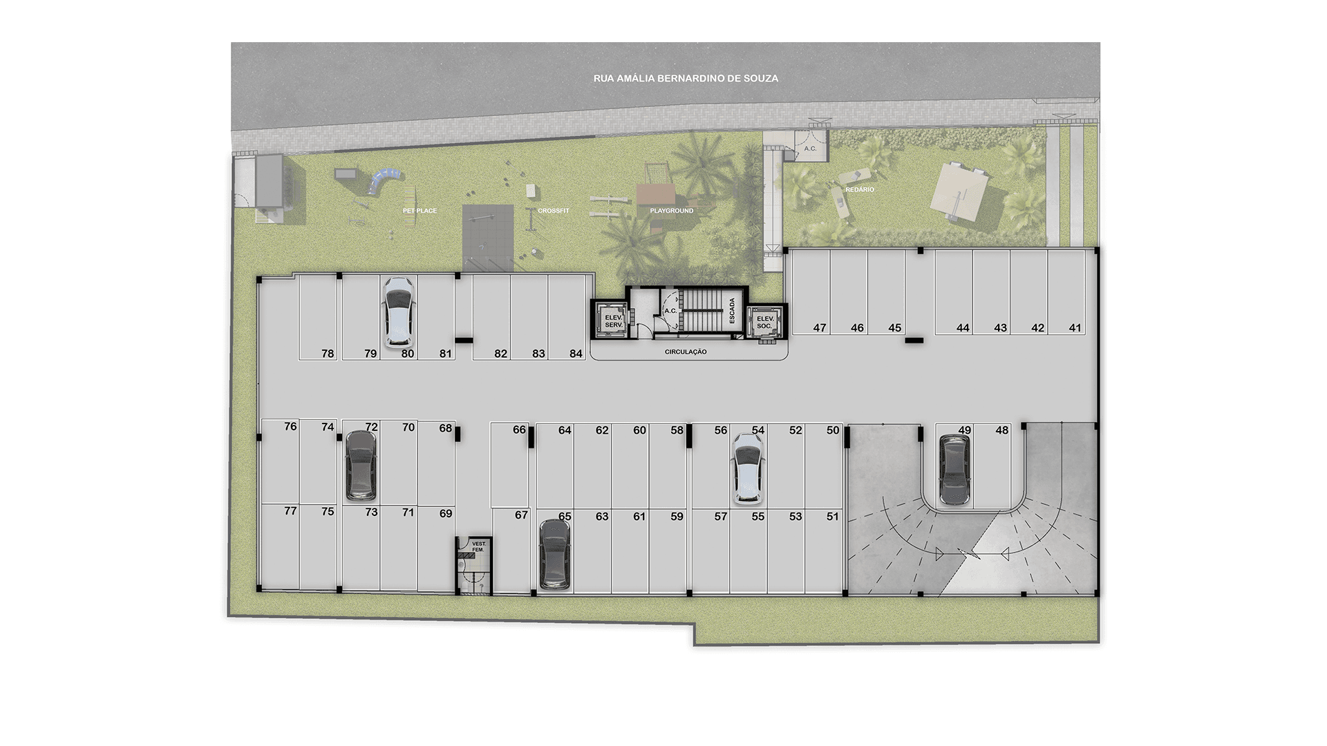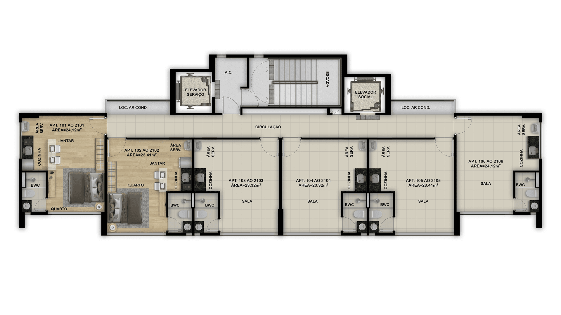 24 PAVIMENTOS, SENDO: 21 PAVIMENTOS TIPO, 2 VAZADOS E 1 COBERTURA