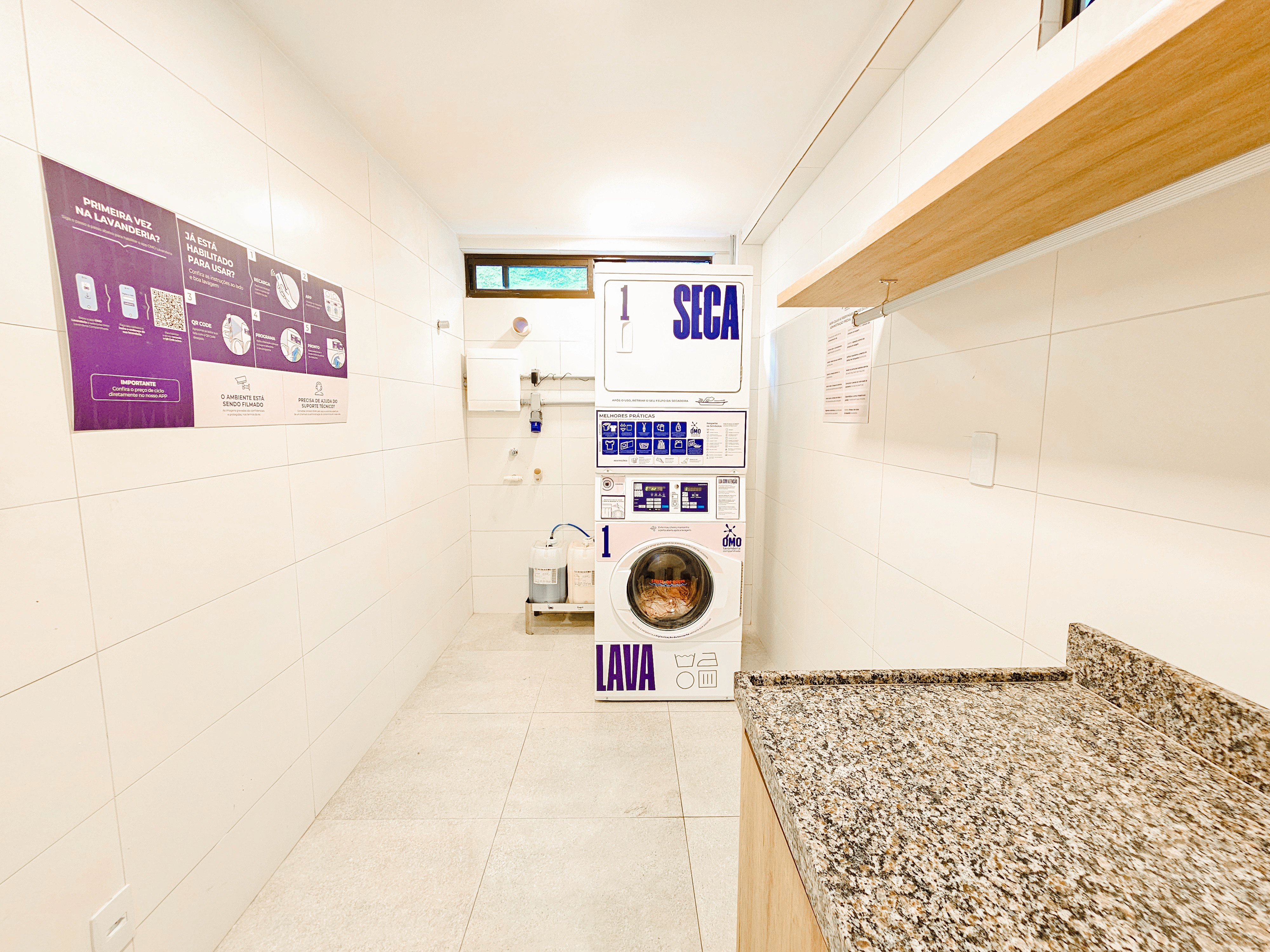 Área prática e equipada, oferecendo conveniência no cuidado com roupas.