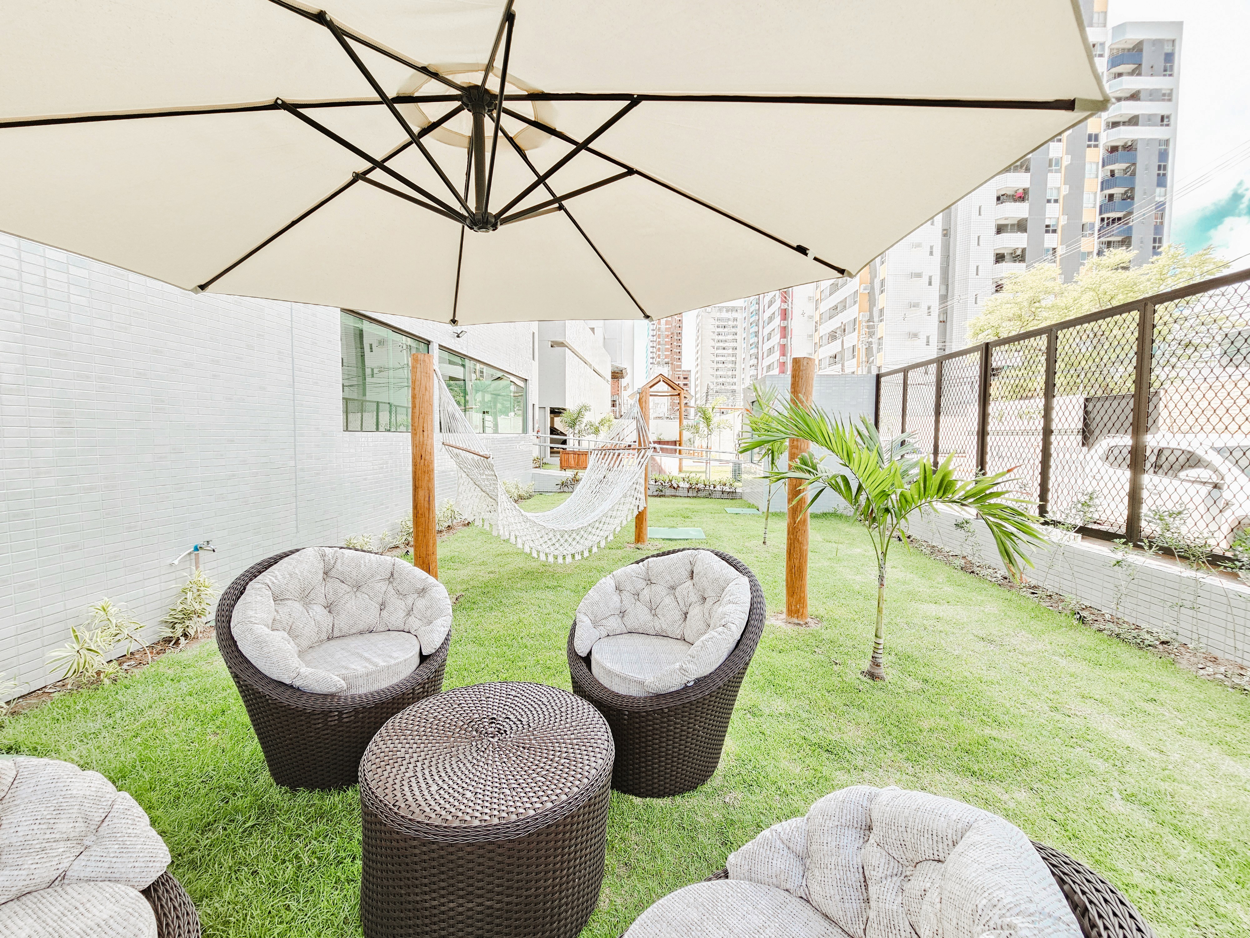 Espaço descontraído com redes confortáveis, perfeito para momentos relaxantes.