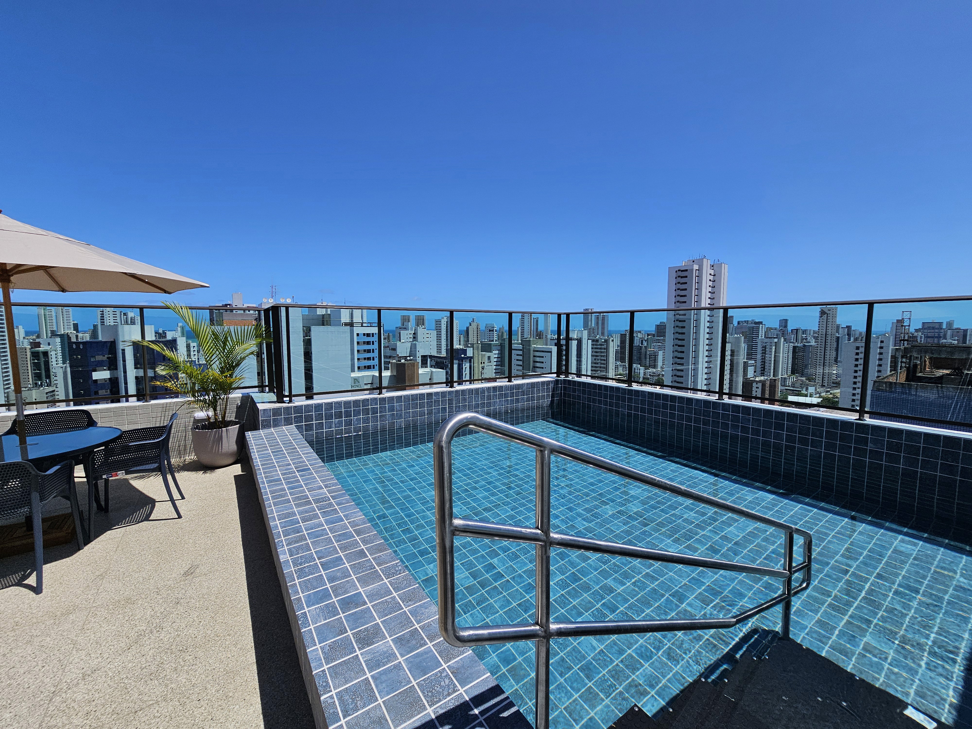 Piscina elevada com vista deslumbrante, proporcionando lazer exclusivo e relaxante.